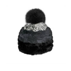 3 Tone Rabbit Beanie | Black + Grey + Black