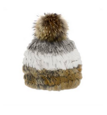 3 Tone Rabbit Beanie | Brown + White + Grey
