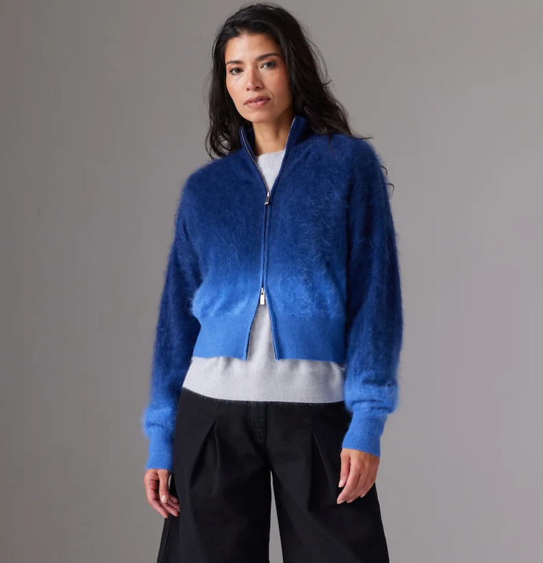 Toto is a bold, badass babe, brushed in softness. This 100% cashmere jacket plays with depth and color in its dip-dyed design, making every piece subtly unique. Plush, warm, and unapologetically high-end, she’s the knit you throw on when you want your outerwear to make a statement.